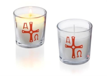 Glas-Osternachtskerze mit rotem Kreuz eingegossen VE48